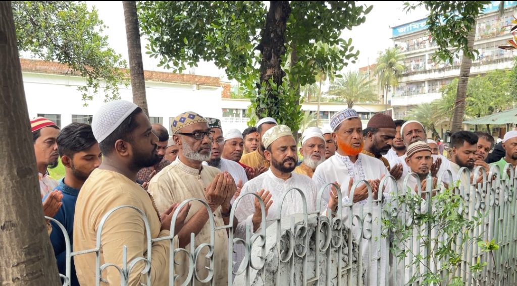 কামরাঙ্গীরচর হাফিজ্জি হুজুর মাদ্রাসা মসজিদে জুম্মার নামায আদায় শেষে এলাকায় ধানের শীষের পক্ষে গণসংযোগ করেন তিনি।