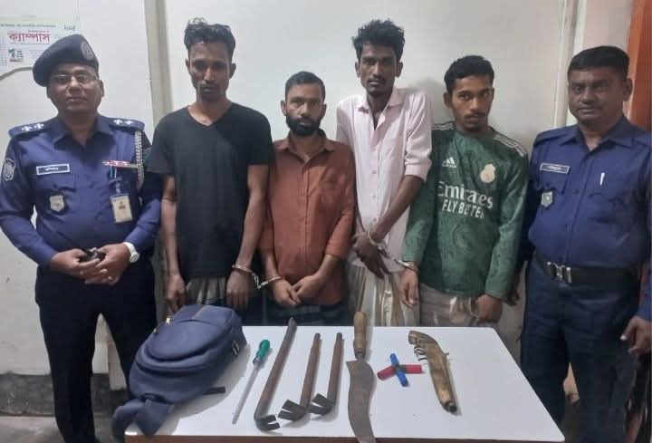 কেরানীগঞ্জে ডাকাতির প্রস্তুতিকালে অস্ত্র-ককটেলসহ ৪ ডাকাত গ্রেপ্তার।