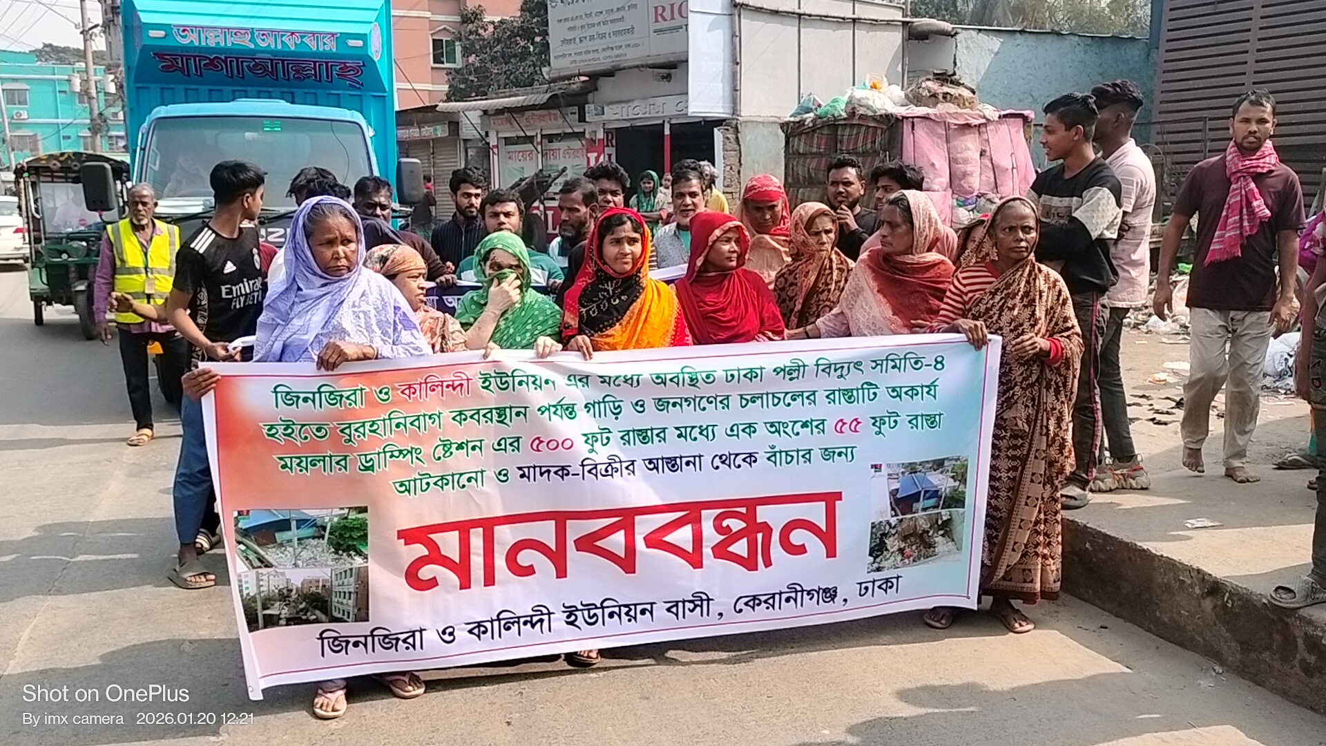 বক্তারা জানান, জিনজিরা ও কালিন্দী ইউনিয়নের মধ্যবর্তী ঢাকা পল্লী বিদ্যুৎ সমিতি-৪ থেকে বুরহানিবাগ কবরস্থান পর্যন্ত প্রায় ৫০০ ফুট সড়কের একটি অংশের ৫৫ ফুট রাস্তা ডাম্পিং স্টেশনের কারণে সম্পূর্ণরূপে বন্ধ হয়ে গেছে। এতে যানবাহন ও সাধারণ মানুষের চলাচল ব্যাহত হচ্ছে। পাশাপাশি এলাকাটি মাদক বিক্রির আখড়ায় পরিণত হওয়ায় সামাজিক নিরাপত্তাও হুমকির মুখে পড়েছে।[/caption]