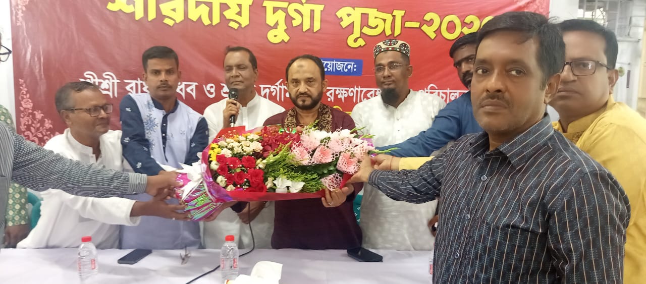 ঢাকা-৭ আসনের মনোনয়ন প্রত্যাশী বিএনপি নেতা রিয়াজ উদ্দিন আহমেদ মনির দুর্গাপূজা মন্দির পরিদর্শন।