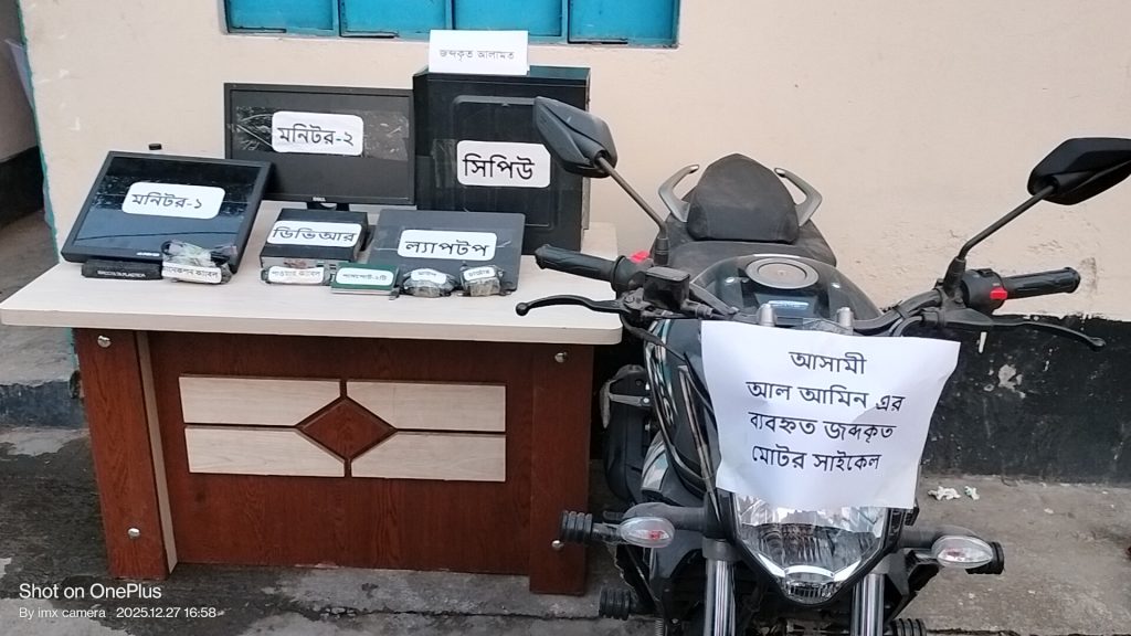ঘটনাস্থল থেকে স্থানীয় গণ্যমান্য ব্যক্তিদের উপস্থিতিতে পুলিশ বিপুল পরিমাণ রাসায়নিক দ্রব্য, চারটি ককটেল সদৃশ বস্তু, একটি ল্যাপটপ ও দুটি মনিটর উদ্ধার করে। পরে সিআইডির ক্রাইমসিন ইউনিট, এন্টি টেররিজম ইউনিট (এটিইউ)সহ আইনশৃঙ্খলা বাহিনীর বিভিন্ন ইউনিট ঘটনাস্থল পরিদর্শন করে তদন্ত শুরু করে।