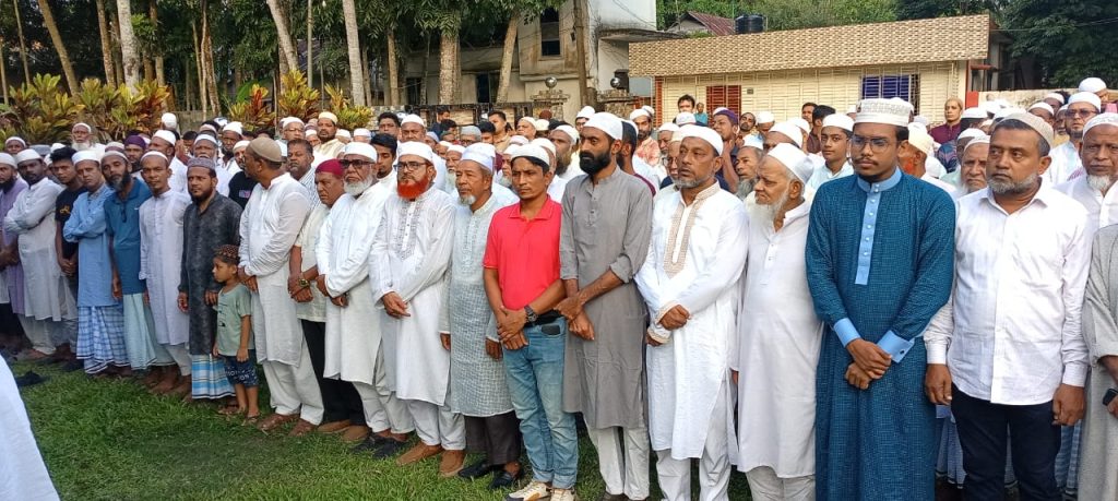 শুক্রবার (৩১ অক্টোবর) বাদ আছর চাঁদপুর শহরের বায়তুল হাফিজ জামে মসজিদের সামনে জানাজার নামাজ অনুষ্ঠিত হয়। এতে রাজনৈতিক, সামাজিক, সাংস্কৃতিক ও প্রশাসনিক অঙ্গনের নানা শ্রেণি-পেশার মানুষ অংশগ্রহণ করেন।
