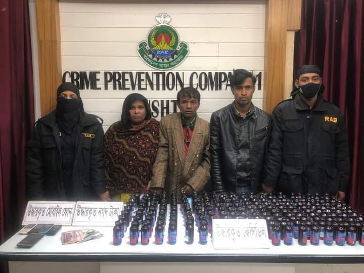 কুষ্টিয়ায় র্যাবের বিশেষ অভিযানে বিপুল পরিমান ফেনসিডিল সহ ৩ জন আসামী গ্রেফতার। আরো পড়ুন